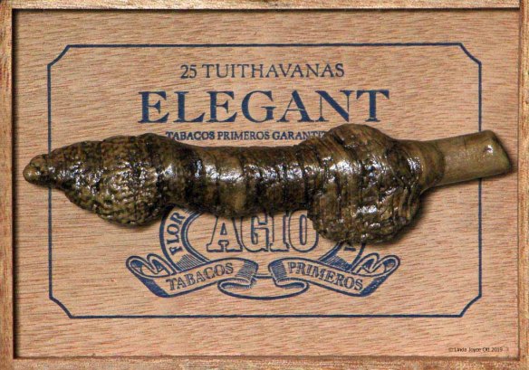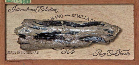 Over the years, I’ve been picking up scraps of wood on my walks. For my “Wood Totem Box Collection”, I’ve enshrined individual pieces of this ready-made, found art in wooden cigar & vintage boxes.