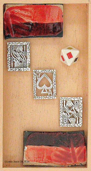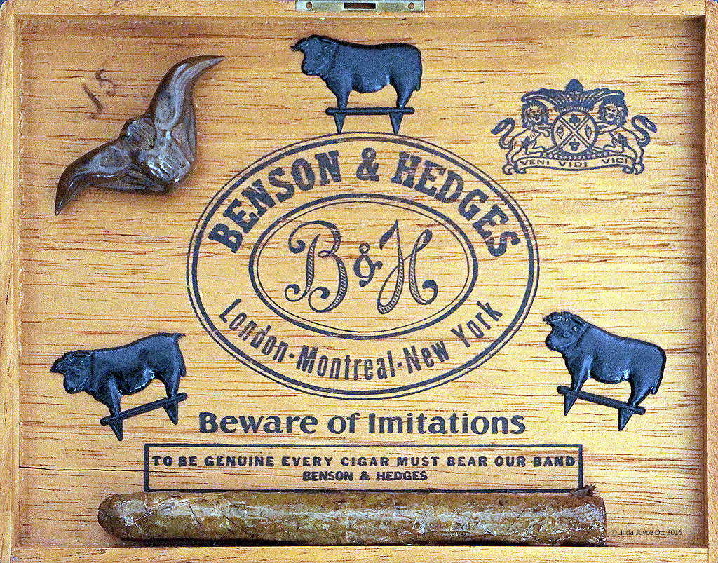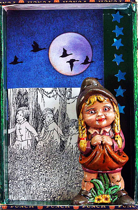 Each of the following vintage cigar boxes features a unique gnome or fairy tale figure from my collection. I used text and images from The Muffin Man and The Wishing Well, two fairy tales featured in a 1940 book called Rock-A-Bye Stories, to embellish the boxes.